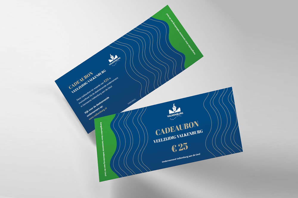 De Cadeaubon Veelzijdig Valkenburg. De bon kan worden besteed bij deelnemende ondernemers in Valkenburg aan de Geul.